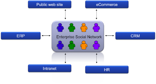 To turn these into systems of engagement, they need to be supplemented by an enterprise social network which provides integration points for both reading and writing of social data. The social network needs to: